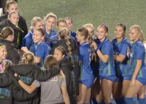 STMA, above, celebrating their fourth straight trip to state after defeating Buffalo last Tuesday night.