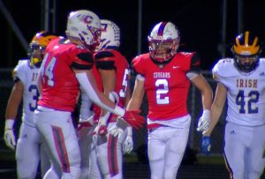 Above, #2 in red Tanner Dittrick, celebrates a TD against Rosemount in last years playoffs.