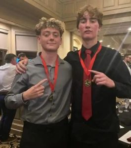 Maple Grove, above, celebrates at their team awards after the regular season.