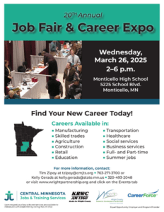 The annual Central Minnesota Job Fair and Career Expo marks a major milestone today (Wednesday) in Monticello.