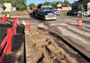 In May, crews replaced all the underground structures beneath the road. Current work includes milling off old layers of road surface to prepare for a brand new surface. Other work includes new sidewalks, utilities and drainage.
