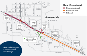 Drivers who use Highway 55 in Annandale are being alerted to a major project on a 1.4 mile segment of the highway that will require detours, and a lot of patience beginning next month.