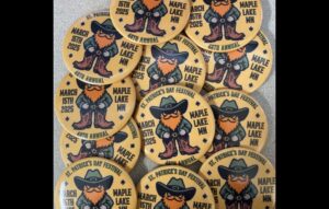 St. Patrick’s Day buttons, designed by Heather and Hanna Zieska are selling for 2 dollars, giving the buyer a chance to win 100 dollars in the annual drawing. Purchase your button at local businesses, or from the Maple Lake Royalty.