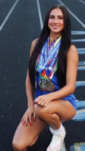 Sienna Clare, Delano, above, took third in the True Team State Track and Field meet in the long jump.