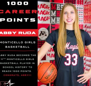 Abby Ruda, above, went over 1,000 points for her career in a playoff win over STMA on Friday night.