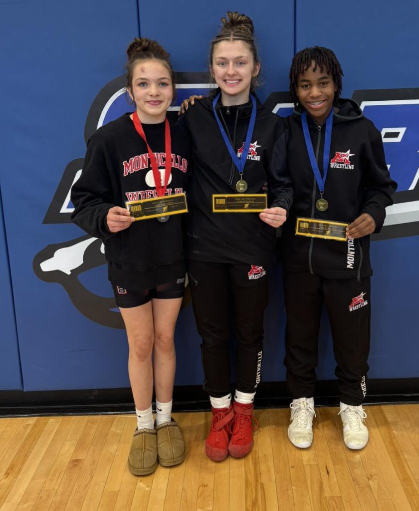 Monticello advanced three girls to state from their Section. Rose Vennett and Jaime Bayliss both finished first in their weight class, while Phoebe Morris was second.