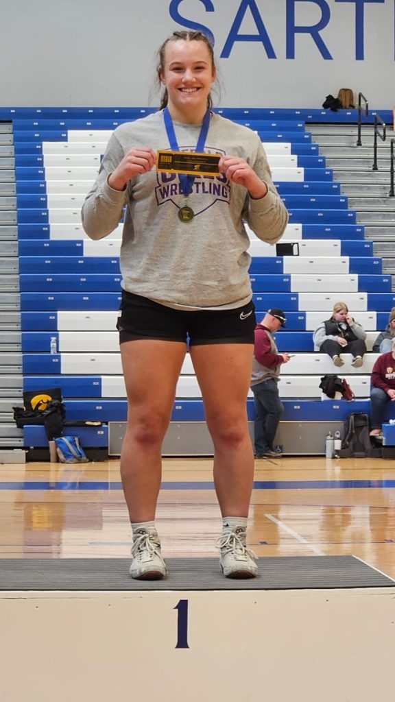 Courtney Kotish became the first Buffalo Bison female wrestler to advance to state by going 3-0 and taking first place at the 148-pound weight class in Section 8. Kotish dominated, winning twice by Tech fall and once by major decision.