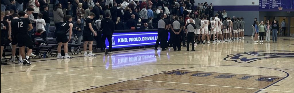 Maple Grove and Buffalo get ready for the national anthem before their showdown on Thursday night.