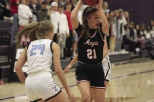 Samantha Voll, above #21, scored 25 in the Magic win on Thursday.