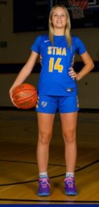 STMA 74, Sartell 44. The Knights had three players in double figures (Cail Jahnke 20), Abby Hoselton (14) and Jacey Bryan (10) as the Knights breezed past the Sabers on Tuesday.