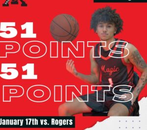Monticello 91, Rogers 69. Trevon Singer had a monster night scoring 51 points in the Magic win.