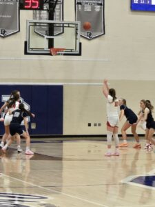 Above, Ally Purcell makes a free throw, one of twelve points she scored on the night for the Cards.