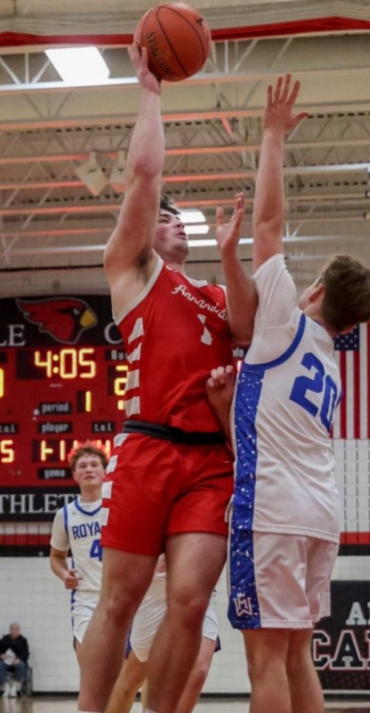 Ben Walter, above in red, finished his career at Annandale with over 1,000 points scored, and also led his team to the Class AA state championship in football. Walter will play football next fall at Concordia-Moorhead.